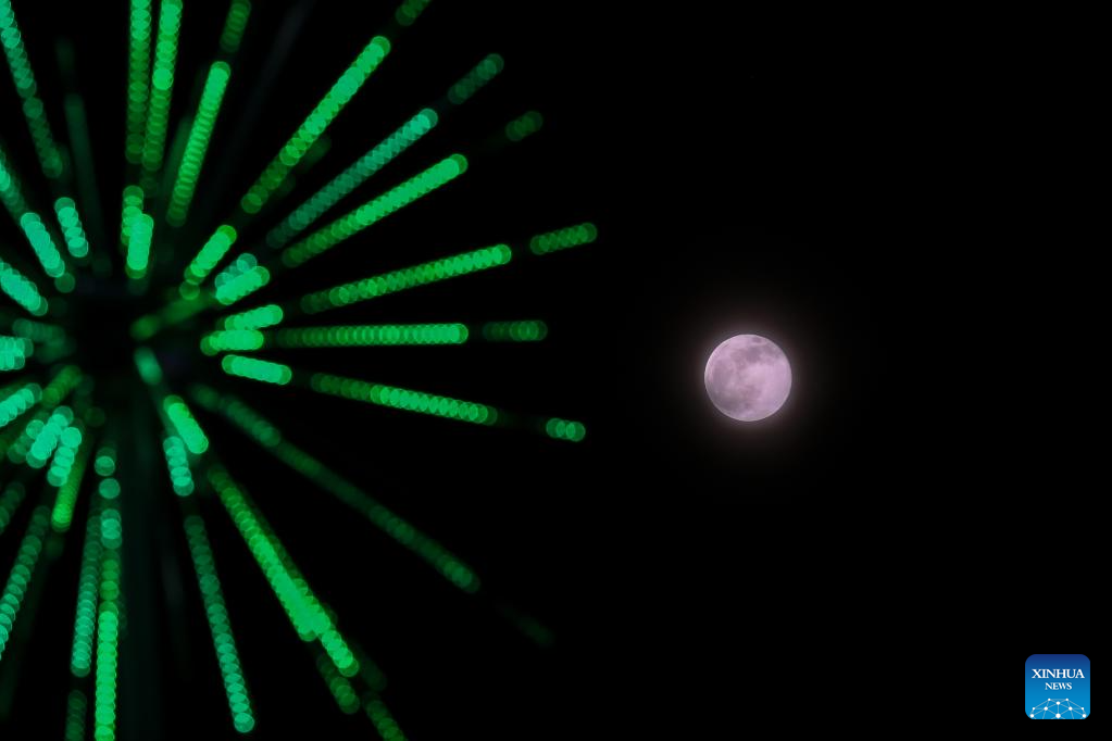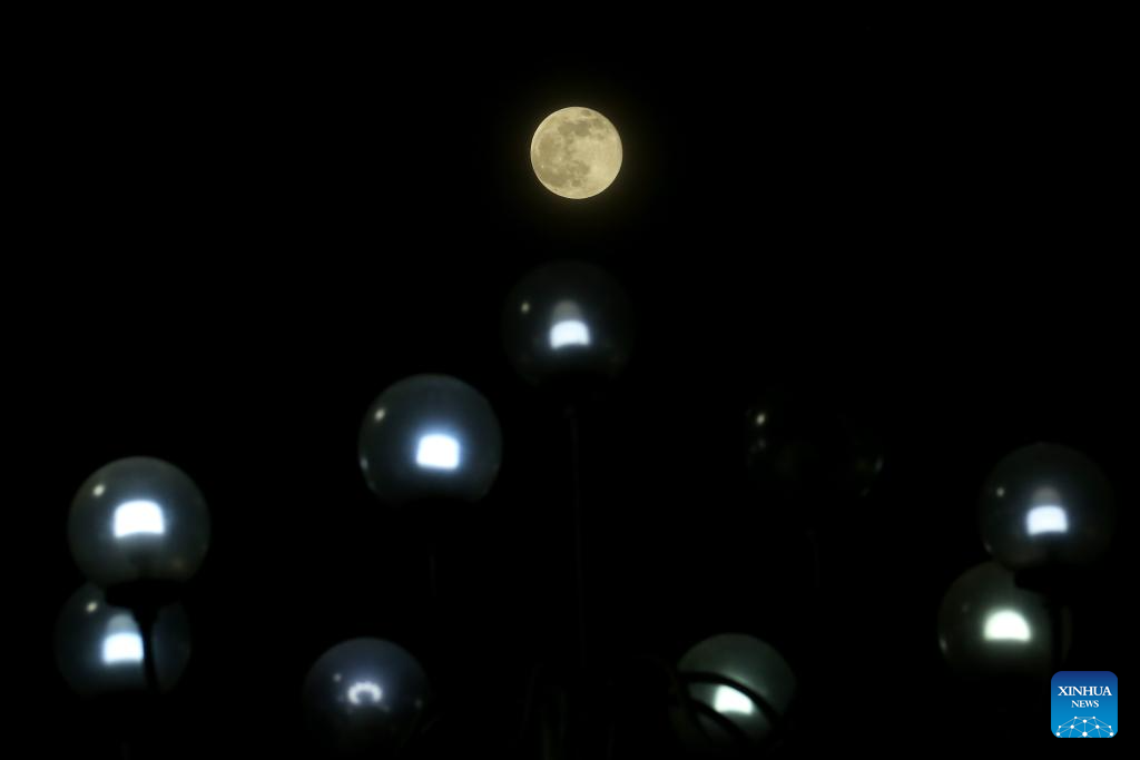 YANGON, 7 octubre, 2025 (Xinhua) -- La luna llena es vista en Yangon, Myanmar, el 7 de octubre de 2025. (Xinhua/Myo Kyaw Soe)