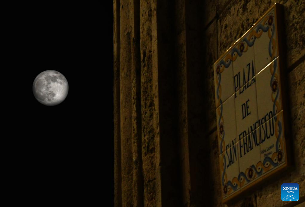 LA HABANA, 7 octubre, 2025 (Xinhua) -- Imagen del 6 de octubre de 2025 de la luna vista desde la Plaza San Francisco de Asís, en La Habana, capital de Cuba. (Xinhua/Joaquín Hernández)