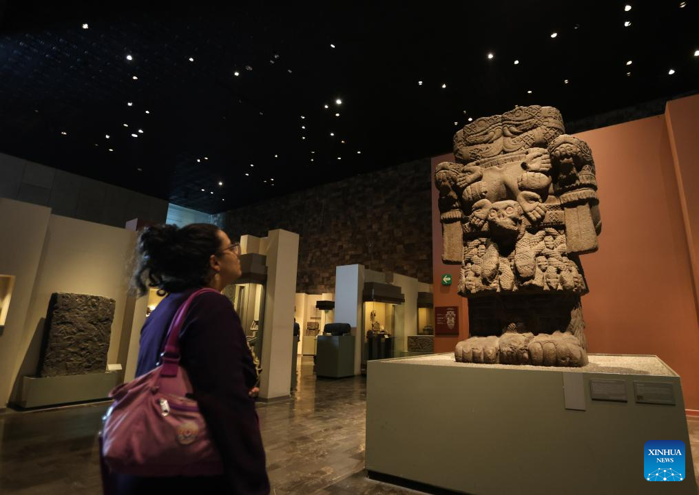 CIUDAD DE MEXICO, 14 octubre, 2025 (Xinhua) -- Imagen del 9 de octubre de 2025 de una persona observando una pieza exhibida en el Museo Nacional de Antropología, en la Ciudad de México, capital de México. En el México indígena, el género y el principio femenino no eran categorías secundarias ni subordinadas, sino parte esencial de una concepción del mundo basada en la dualidad y el equilibrio, dijo a Xinhua la destacada curadora mexicana, Karina Romero Blanco. (Xinhua/Francisco Cañedo)
