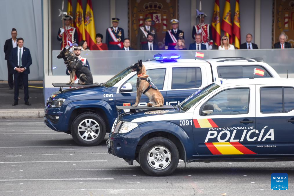 MADRID, 13 octubre, 2025 (Xinhua) -- Imagen del 12 de octubre de 2025 de vehículos policiales vistos durante un desfile militar conmemorativo por el Día Nacional, en Madrid, España. (Xinhua/Gustavo Valiente)