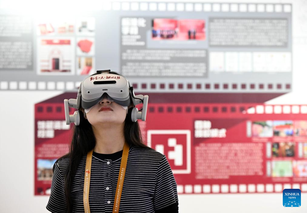 QINGDAO, 16 octubre, 2025 (Xinhua) -- Una asistente prueba un dispositivo de realidad virtual en la décima Exposición Internacional de los Derechos de Autor de China, en Qingdao, en la provincia de Shandong, en el este de China, el 16 de octubre de 2025. Con el tema "La Inteligencia Digital Lidera el Futuro, los Derechos de Autor Promueven el Desarrollo Innovador", la décima Exposición Internacional de los Derechos de Autor de China y el Foro Internacional de los Derechos de Autor 2025 se inauguraron el jueves en Qingdao. (Xinhua/Li Ziheng)