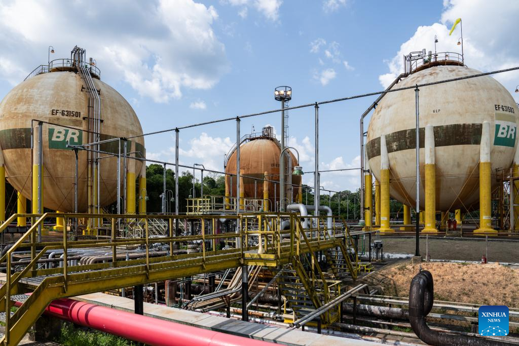 AMAZONAS, 19 octubre, 2025 (Xinhua) -- Imagen del 16 de octubre de 2025 de tanques de almacenamiento de gas licuado de petróleo situados en el área de producción del Campo de Producción de Petróleo y Gas de Urucu, en el estado de Amazonas, Brasil. El Campo de Producción de Petróleo y Gas de Urucu, localizado en el corazón del estado brasileño de Amazonas, es una de las bases de producción de petróleo y gas en tierra firme más importantes del país. Rodeado de selva tropical virgen, ha funcionado de manera constante desde su puesta en marcha en 1988, suministrando petróleo y gas natural que satisfacen las necesidades energéticas del norte de Brasil. Según su operador, Petrobras, el yacimiento ha conservado alrededor del 98 por ciento de su superficie como bosque nativo. Se han implementado programas de reciclaje de agua de lluvia, recuperación de residuos y reforestación, plantando más de 1,5 millones de árboles nativos. (Xinhua/Wang Tiancong)