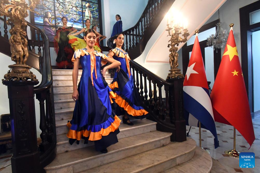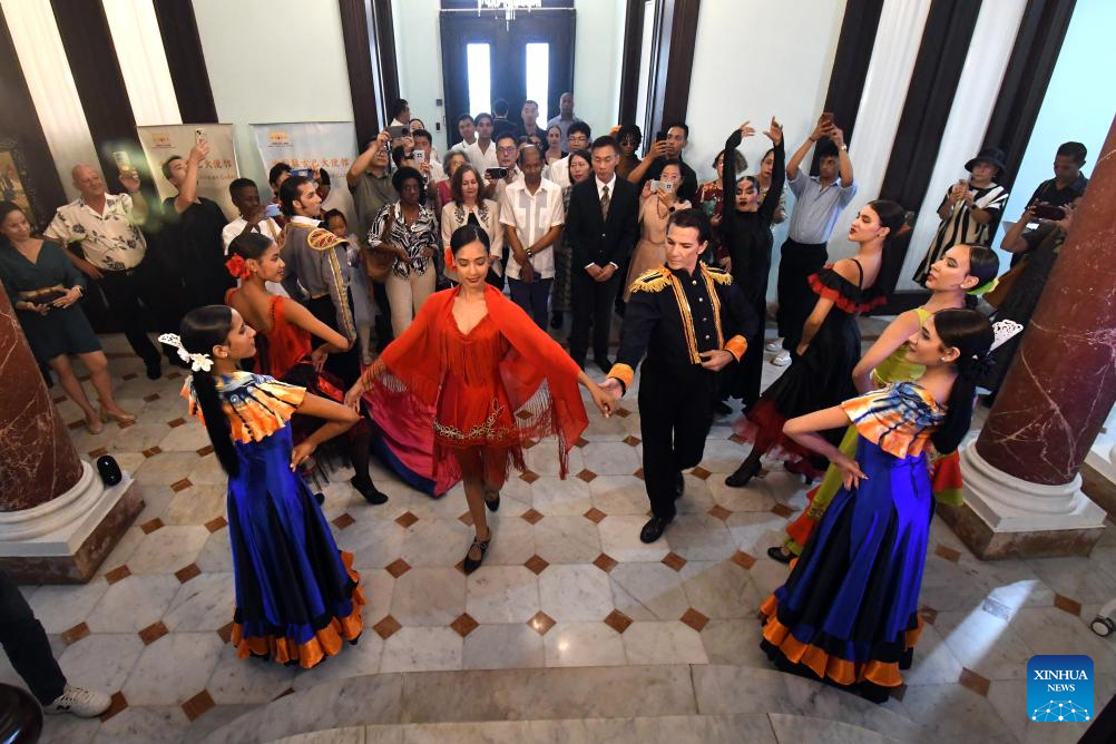 LA HABANA, 23 octubre, 2025 (Xinhua) -- Imagen del 22 de octubre de 2025 de bailarines del Ballet Español de Cuba realizando una presentación luego de una conferencia de prensa sobre el anuncio oficial de una gira del Ballet Español de Cuba por China, en la Embajada de China en Cuba, en La Habana, capital de Cuba. El Ballet Español de Cuba, bajo la dirección del maestro Eduardo Veitía, iniciará el 27 de octubre su tercera gira por China, la cual se extenderá hasta diciembre de 2025. (Xinhua/Joaquín Hernández)