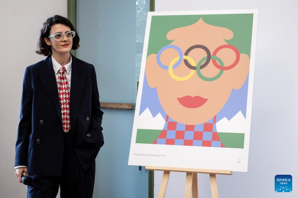 MILAN, 23 octubre, 2025 (Xinhua) -- Imagen del 22 de octubre de 2025 de la artista italiana, Olimpia Zagnoli, presentando el Cartel Icónico Oficial de los Juegos Olímpicos de Invierno de Milán Cortina 2026 durante la ceremonia de develación de los Carteles Icónicos Oficiales de los Juegos Olímpicos y Paralímpicos de Invierno de Milán Cortina 2026, en la Trienal de Milán, en Milán, Italia. (Xinhua)