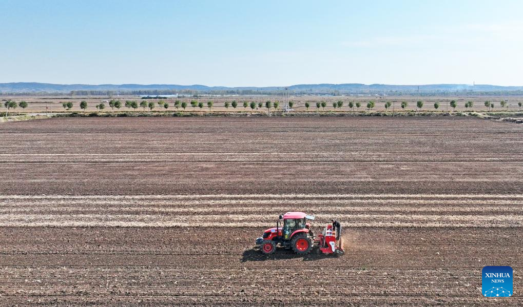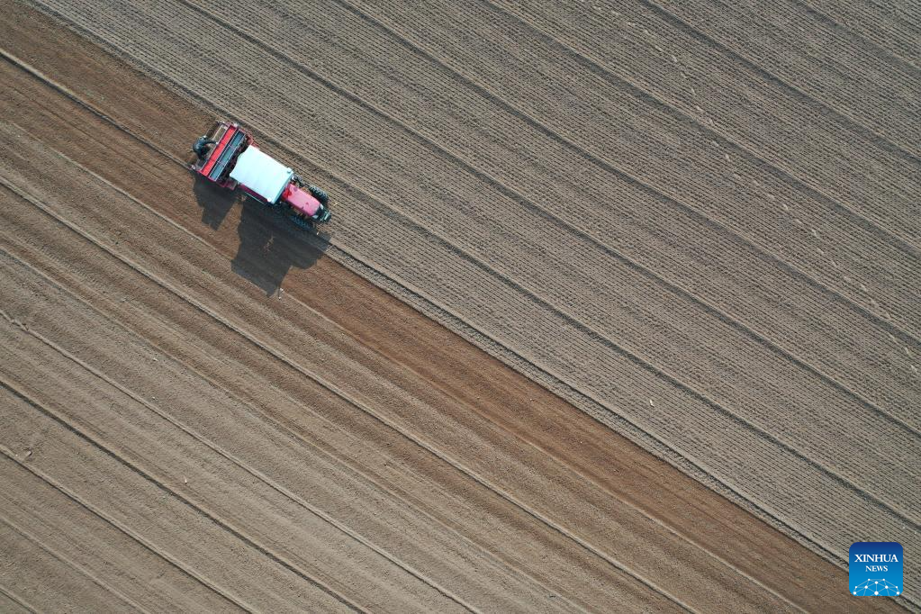 BEIJING, 3 noviembre, 2025 (Xinhua) -- Vista aérea tomada con un dron de un agricultor sembrando trigo en un campo, en la ciudad de Shangqiu, en la provincia de Henan, en el centro de China, el 3 de noviembre de 2025. Para el 30 de octubre, se ha cosechado más del 90 por ciento de los cereales de otoño y se ha sembrado más del 25 por ciento del trigo de invierno en todo el país. (Xinhua/Xu Zeyuan)