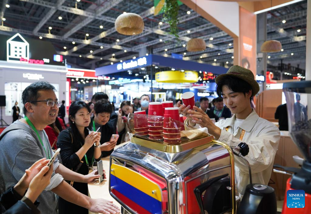 SHANGHAI, 5 noviembre, 2025 (Xinhua) -- Personas degustan café en el Pabellón de Colombia durante la VIII Exposición Internacional de Importaciones de China (CIIE, por sus siglas en inglés), en Shanghai, en el este de China, el 5 de noviembre de 2025. La VIII CIIE se inauguró aquí el miércoles. Tailandia, Emiratos Arabes Unidos, Nigeria, Georgia, Suecia y Colombia son los países invitados de honor en la CIIE de este año. (Xinhua/Fan Yuqing)