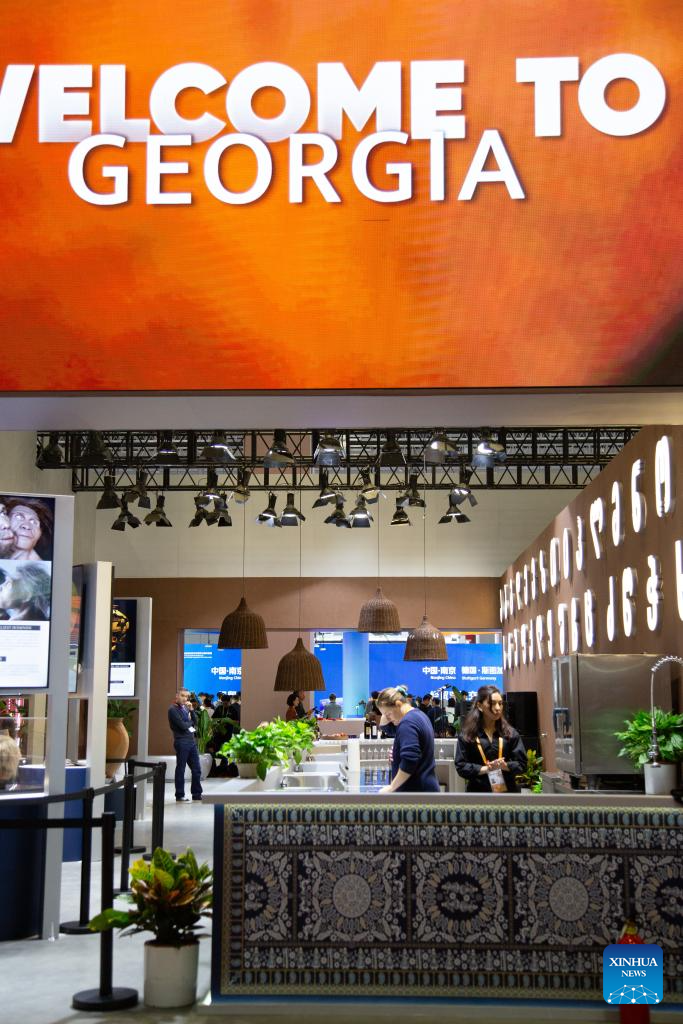 SHANGHAI, 5 noviembre, 2025 (Xinhua) -- Imagen del 5 de noviembre de 2025 del Pabellón de Georgia durante la VIII Exposición Internacional de Importaciones de China (CIIE, por sus siglas en inglés), en Shanghai, en el este de China. La VIII CIIE se inauguró aquí el miércoles. Tailandia, Emiratos Arabes Unidos, Nigeria, Georgia, Suecia y Colombia son los países invitados de honor en la CIIE de este año. (Xinhua/Tian Weiwei)
