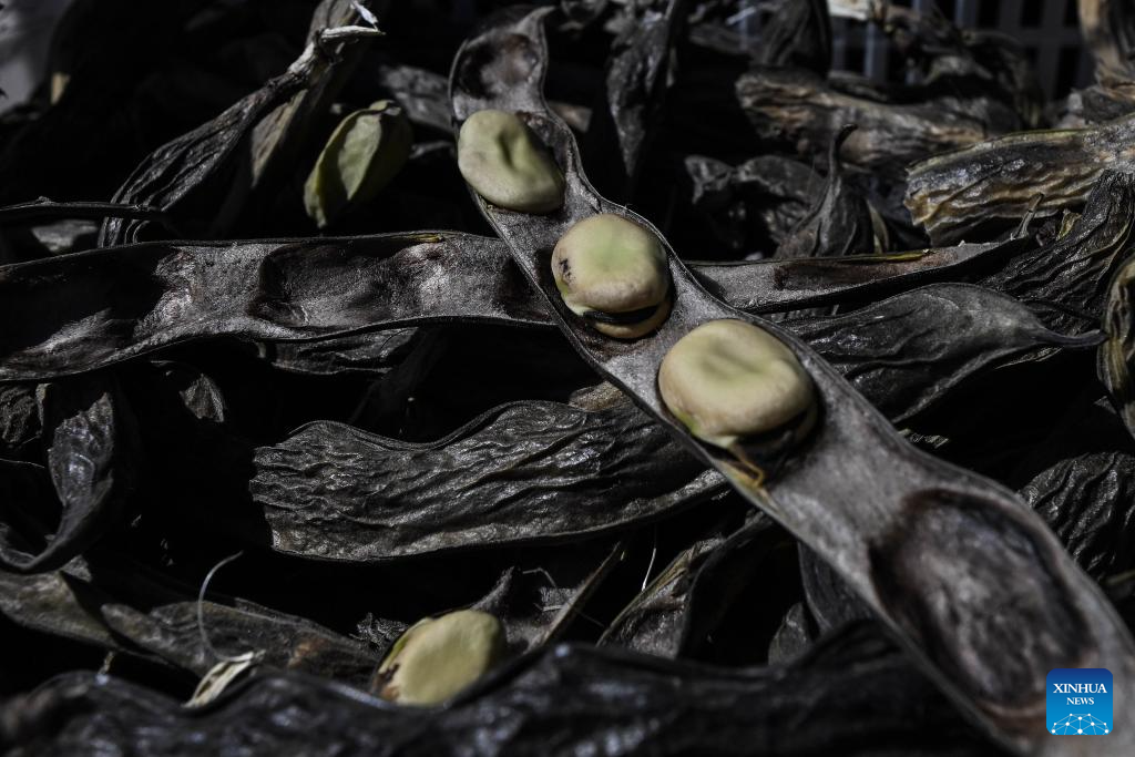 COQUIMBO, 6 noviembre, 2025 (Xinhua) -- Imagen del 29 de octubre 2025 de semillas de habas vistas en la Parcela de Multiplicación de Semillas del Instituto de Investigaciones Agropecuarias de Chile, en la comuna de Vicuña, en la región de Coquimbo, Chile. La sequía estructural que azota en el norte chileno ha cambiado la forma de hacer agricultura, sin embargo, un grupo de resilientes agricultores se han transformado en los "guardianes de las semillas", al cuidar los granos para proteger el ecosistema y los sabores atávicos de los eclécticos valles del país sudamericano. (Xinhua/Jorge Villegas)