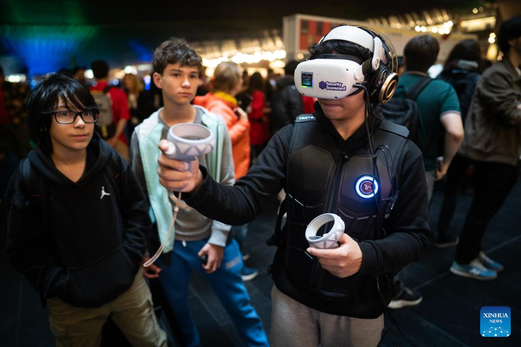 BUENOS AIRES, 7 noviembre, 2025 (Xinhua) -- Un asistente juega un videojuego de realidad virtual durante la 23 edición de la Exposición de Videojuegos Argentina en la Plaza Seca del Palacio Libertad, en la ciudad de Buenos Aires, capital de Argentina, el 7 de noviembre de 2025. (Xinhua/Martín Zabala)
