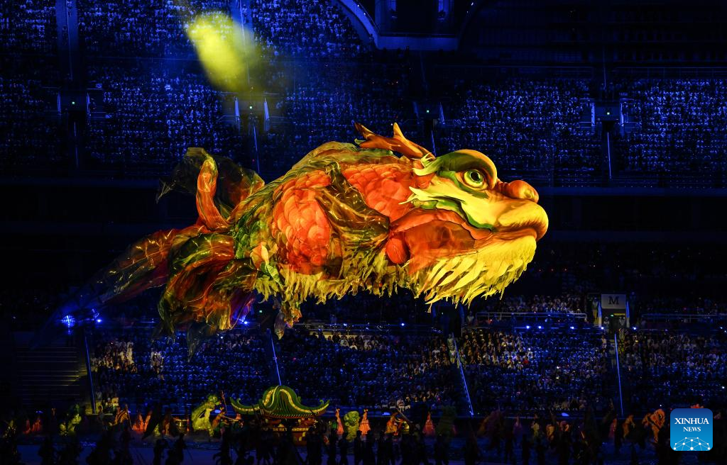 GUANGZHOU, 9 noviembre, 2025 (Xinhua) -- Artistas realizan una presentación durante la ceremonia de inauguración de los XV Juegos Nacionales de China, en Guangzhou, en la provincia de Guangdong, en el sur de China, el 9 de noviembre de 2025. (Xinhua/Du Yu)