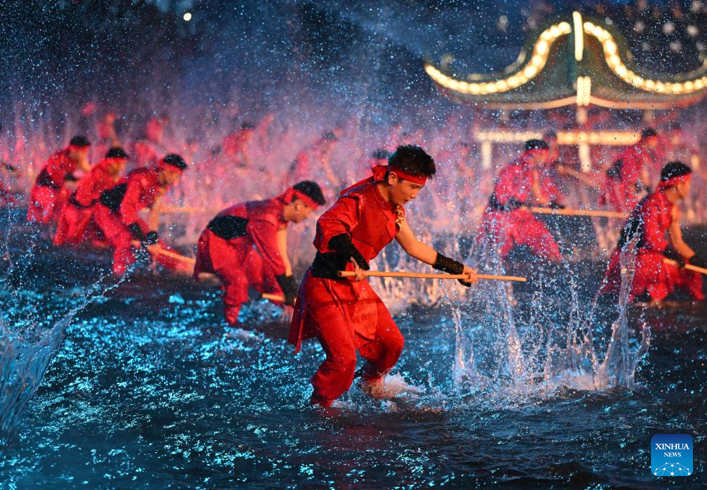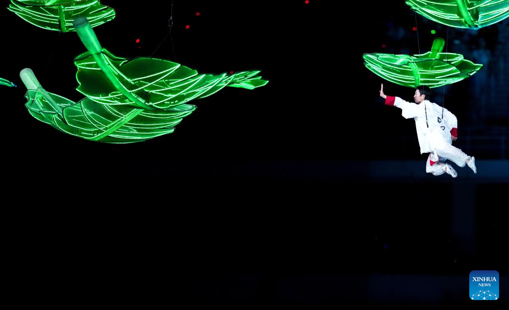 GUANGZHOU, 9 noviembre, 2025 (Xinhua) -- Artistas realizan una presentación durante la ceremonia de inauguración de los XV Juegos Nacionales de China, en Guangzhou, en la provincia de Guangdong, en el sur de China, el 9 de noviembre de 2025. (Xinhua/Deng Hua)