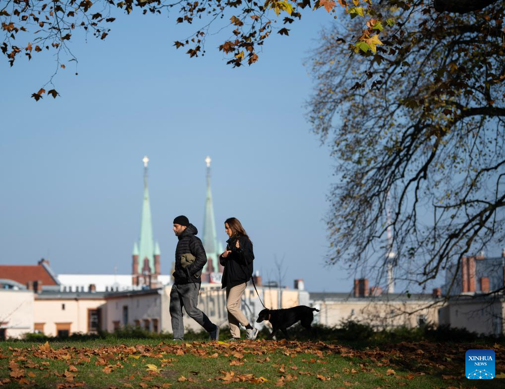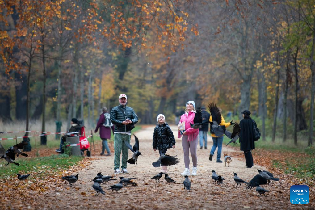 BERLIN, 9 noviembre, 2025 (Xinhua) -- Imagen del 7 de noviembre de 2025 de personas caminando por el parque Viktoria, en Berlín, Alemania. (Xinhua/Zhang Haofu)