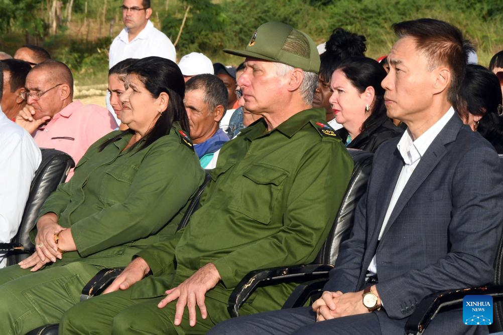 ARTEMISA, 12 noviembre, 2025 (Xinhua) -- El presidente cubano, Miguel Díaz-Canel (c-frente), y el embajador de China en Cuba, Hua Xin (d-frente), asisten a la inauguración del nuevo parque fotovoltaico con asistencia china, en la provincia de Artemisa, en el oeste de Cuba, el 12 de noviembre de 2025. Un nuevo parque fotovoltaico con asistencia china fue inaugurado el miércoles en la provincia cubana de Artemisa, a unos 50 km al oeste de La Habana. (Xinhua/Joaquín Hernández)