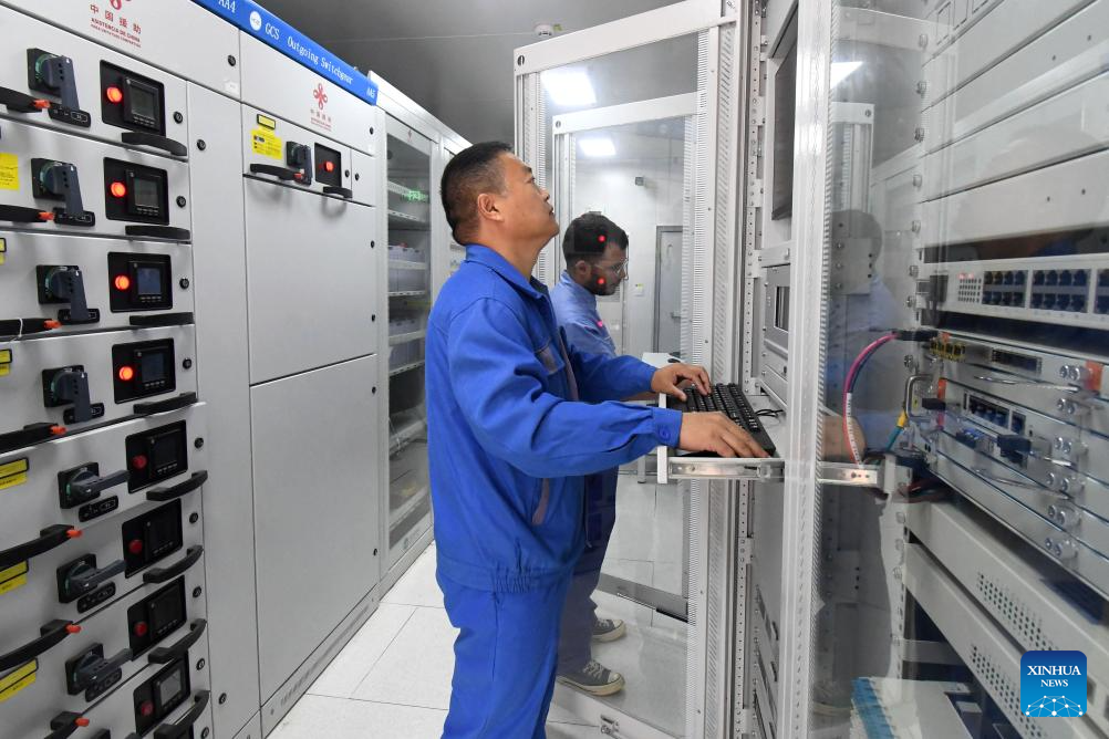 ARTEMISA, 12 noviembre, 2025 (Xinhua) -- Un técnico chino (frente) y un técnico cubano (atrás) trabajan en una sala de monitoreo del nuevo parque fotovoltaico con asistencia china en el marco de su inauguración, en la provincia de Artemisa, en el oeste de Cuba, el 12 de noviembre de 2025. Un nuevo parque fotovoltaico con asistencia china fue inaugurado el miércoles en la provincia cubana de Artemisa, a unos 50 km al oeste de La Habana. (Xinhua/Joaquín Hernández)