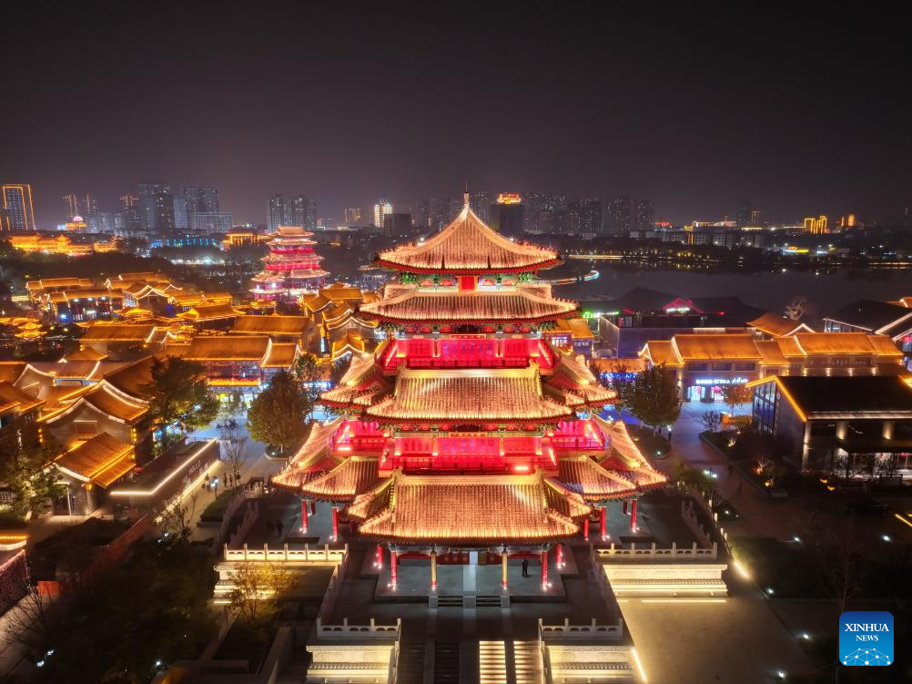 CANGZHOU, 12 noviembre, 2025 (Xinhua) -- Vista aérea tomada con un dron el 11 de noviembre de 2025 de la Torre de Langyin a lo largo de la sección de Cangzhou del Gran Canal, en la ciudad de Cangzhou, en la provincia de Hebei, en el norte de China. El Gran Canal, que conecta Beijing y Hangzhou, en la provincia de Zhejiang, en el este de China, es la vía navegable artificial más larga del mundo. (Xinhua/Mu Yu)