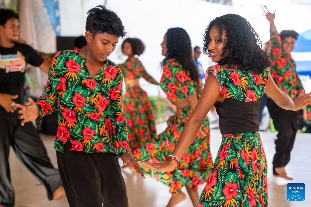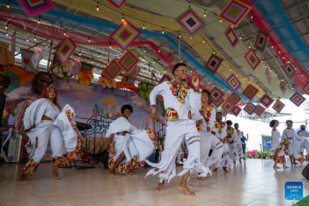 RIVAS, 13 noviembre, 2025 (Xinhua) -- Imagen cedida por el Consejo de Comunicación y Ciudadanía de la República de Nicaragua del 8 de noviembre de 2025 de una mujer realizando una presentación en el III Festival del Arte y Cultura Caribeña, en la ciudad de Rivas, Nicaragua. La tercera edición del Festival del Arte y Cultura Caribeña que se realizó del 8 al 9 de noviembre celebró la riqueza cultural de la región y el llamado Día Nacional Garífuna, que enaltece las raíces africanas en Centroamérica, producto del mestizaje de africanos y pueblos originarios. (Xinhua/Consejo de Comunicación y Ciudadanía de la República de Nicaragua)
