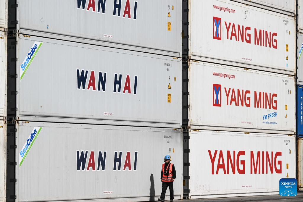 SAN ANTONIO, 19 noviembre, 2025 (Xinhua) -- Imagen del 18 de noviembre de 2025 de un trabajador portuario caminando frente a contenedores durante la ceremonia de lanzamiento de la temporada de exportación de cerezas 2025-2026 en las dependencias de San Antonio Terminal Internacional, en el puerto de San Antonio, en la región de Valparaíso, Chile. Chile comenzó esta semana la temporada de exportación de cerezas frescas 2025-2026 por vía marítima, con barcos de ruta directa hacia China para abastecer al mercado asiático en su temporada invernal. (Xinhua/Jorge Villegas)