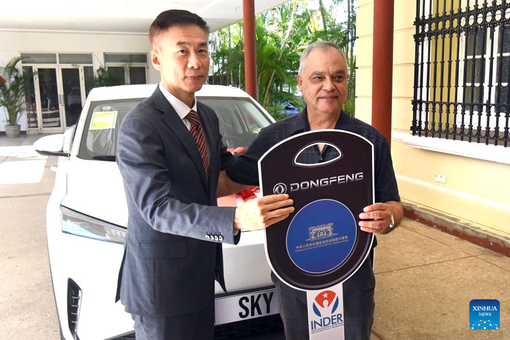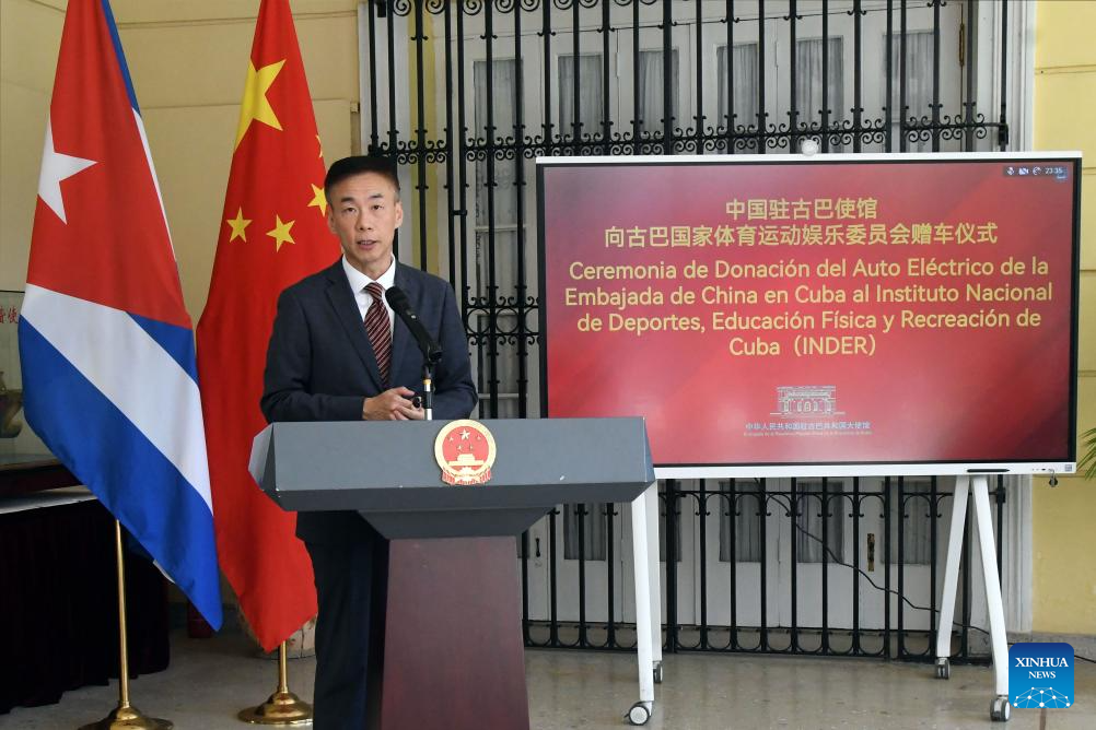 LA HABANA, 21 nov (Xinhua) -- China donó el viernes un auto eléctrico al Instituto Nacional de Deportes, Educación Física y Recreación (Inder) de Cuba, en un acto que refuerza la colaboración bilateral en el sector.