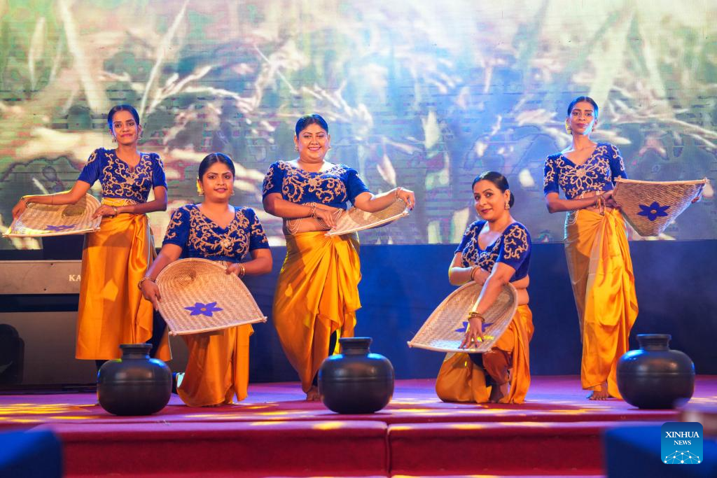 (251122) -- COLOMBO, 22 noviembre, 2025 (Xinhua) -- Imagen del 20 de noviembre de 2025 de integrantes de un equipo esrilanqués realizando una presentación durante el segundo Carnaval de Comida China y Espectáculo Cultural China-Sri Lanka, en Colombo, Sri Lanka. El evento se llevó a cabo aquí del jueves al viernes, contribuyendo a mejorar los vínculos culturales entre los dos países. Durante el evento, equipos de China, Sri Lanka y otros países también realizaron presentaciones de danzas tradicionales, artes marciales chinas y otros espectáculos. (Xinhua/Thilina Kaluthotage)