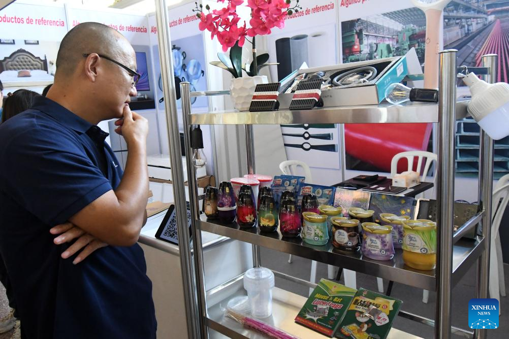 LA HABANA, 26 noviembre, 2025 (Xinhua) -- Imagen del 25 de noviembre de 2025 de un hombre observando productos exhibidos en un estand de China durante la celebración del Día de China en la segunda jornada de la 41ª Feria Internacional de La Habana (FIHAV 2025), celebrada en el recinto ferial Expocuba, en La Habana, capital de Cuba. El Gobierno chino aspira a impulsar el desarrollo de las relaciones comerciales con Cuba, afirmó el martes Hua Xin, durante la segunda jornada de la 41ª FIHAV 2025. (Xinhua/Joaquín Hernández)