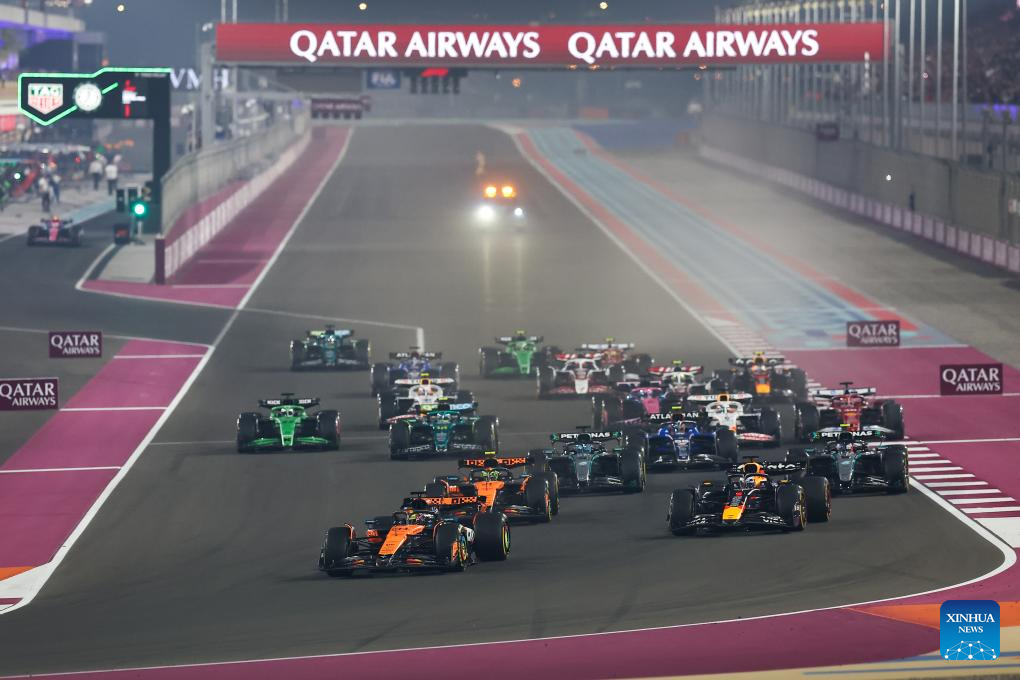 DOHA, 1 diciembre, 2025 (Xinhua) -- Imagen del 30 de noviembre de 2025 del inicio de la carrera durante el Gran Premio de Qatar de Fórmula Uno, en el Circuito Internacional de Lusail, en Doha, Qatar. (Xinhua/Li Chao)