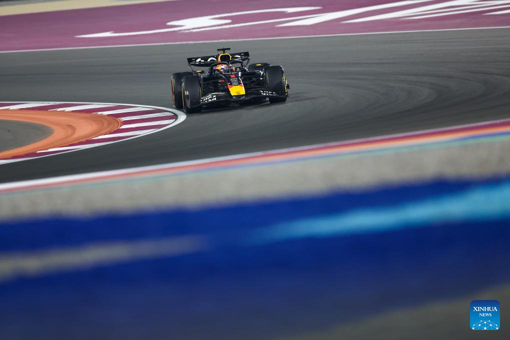 DOHA, 1 diciembre, 2025 (Xinhua) -- Imagen del 30 de noviembre de 2025 del piloto neerlandés de la escudería Red Bull, Max Verstappen, compitiendo durante el Gran Premio de Qatar de Fórmula Uno, en el Circuito Internacional de Lusail, en Doha, Qatar. (Xinhua/Li Chao)