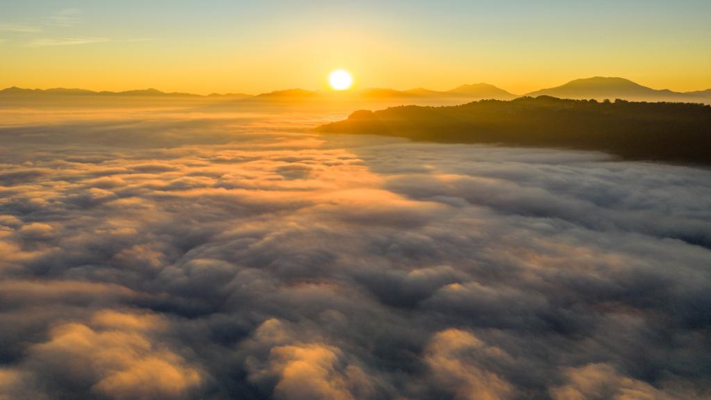 PU'ER, 2 diciembre, 2025 (Xinhua) -- Vista aérea tomada con un dron el 2 de diciembre de 2025 del paisaje de la Montaña Jingmai, en el distrito autónomo de la etnia lahu de Lancang, en la ciudad de Pu'er, en la provincia de Yunnan, en el suroeste de China. (Xinhua/Hu Chao)