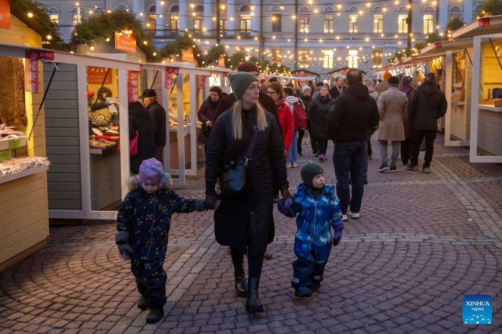 HELSINKI, 5 diciembre, 2025 (Xinhua) -- Personas visitan el Mercado Navideño de Helsinki, en Helsinki, Finlandia, el 5 de diciembre de 2025. Ubicado en la Plaza del Senado, en el corazón de la ciudad, el Mercado Navideño de Helsinki es una histórica feria navideña al aire libre que atrae a un gran número de visitantes cada año. (Xinhua/Matti Matikainen)