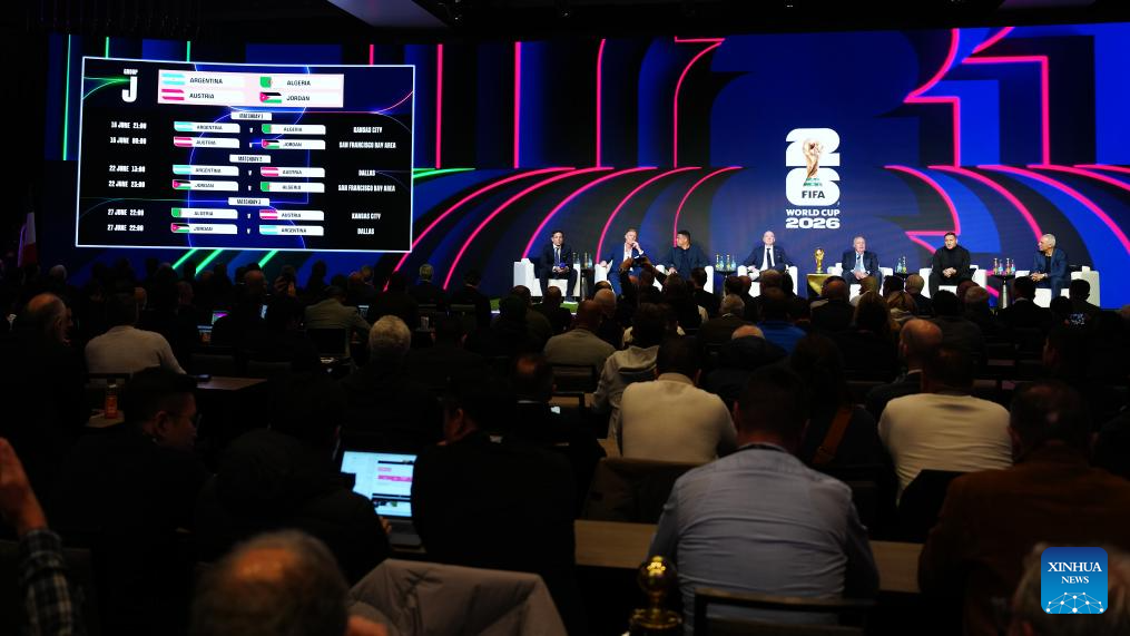 WASHINGTON D. C., 7 diciembre, 2025 (Xinhua) -- Imagen del 6 de diciembre de 2025 de una pantalla mostrando el calendario durante la develación del calendario de partidos para la Copa Mundial 2026, en Washington D. C., Estados Unidos. (Xinhua/Jia Haocheng)