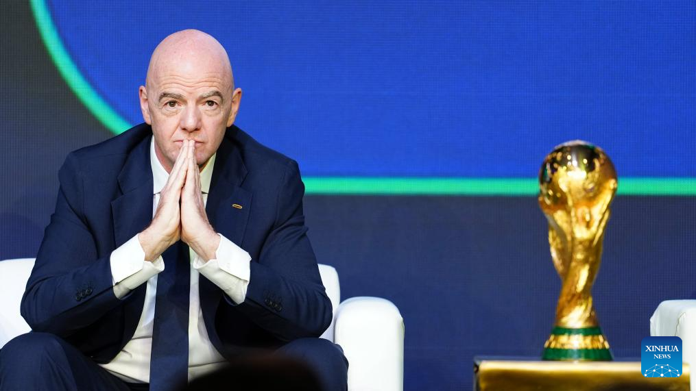 WASHINGTON D. C., 7 diciembre, 2025 (Xinhua) -- Imagen del 6 de diciembre de 2025 del presidente de la FIFA, Gianni Infantino, reaccionando durante la develación del calendario de partidos para la Copa Mundial 2026, en Washington D. C., Estados Unidos. (Xinhua/Jia Haocheng)