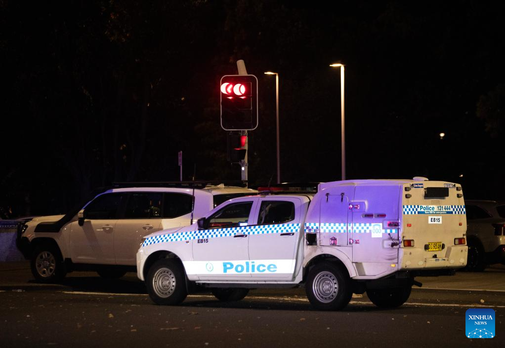 SIDNEY, 14 diciembre, 2025 (Xinhua) -- Vehículos de la policía son vistos cerca del sitio de un tiroteo en la playa Bondi, en Sídney, Australia, el 14 de diciembre de 2025. (Xinhua/Ma Ping)