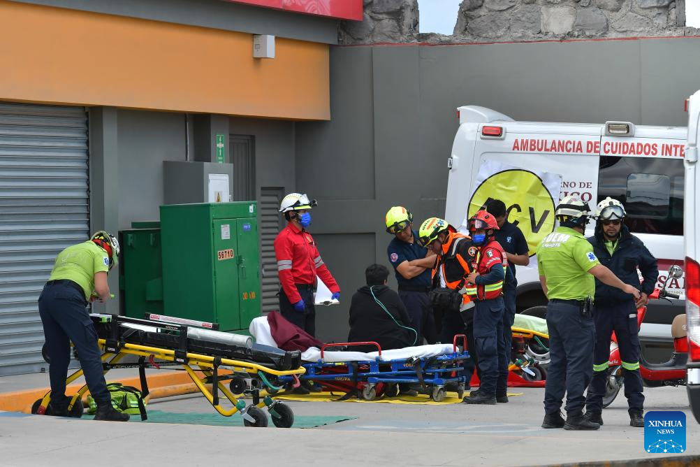 Elementos de servicios de emergencias atienden a una persona con crisis nerviosas en el sitio de un accidente de una aeronave, en los suburbios de la ciudad de Toluca, Estado de México, México, el 15 de diciembre de 2025. Al menos seis muertos dejó el lunes el desplome de una aeronave entre el municipio de San Mateo Atenco y Toluca, capital del central Estado de México, informó la oficina de Protección Civil de la entidad. (Xinhua/Arturo Hernández)