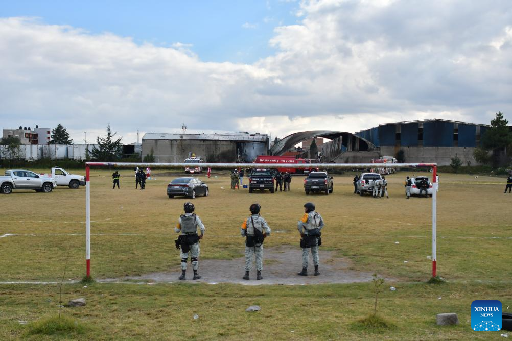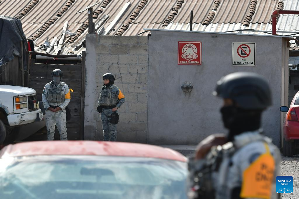 Elementos de la Guardia Nacional vigilan en el sitio de un accidente de una aeronave, en los suburbios de la ciudad de Toluca, Estado de México, México, el 15 de diciembre de 2025. Al menos seis muertos dejó el lunes el desplome de una aeronave entre el municipio de San Mateo Atenco y Toluca, capital del central Estado de México, informó la oficina de Protección Civil de la entidad. (Xinhua/Arturo Hernández)