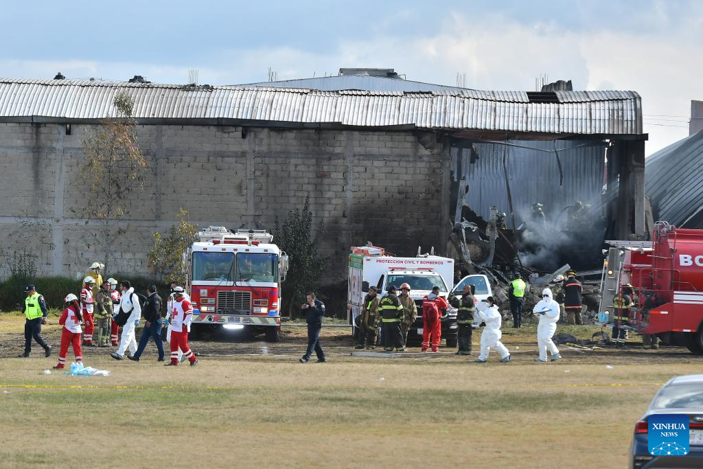 Elementos de bomberos, policía y Fiscalía del Estado de México trabajan en el sitio de un accidente de una aeronave, en los suburbios de la ciudad de Toluca, Estado de México, México, el 15 de diciembre de 2025. Al menos seis muertos dejó el lunes el desplome de una aeronave entre el municipio de San Mateo Atenco y Toluca, capital del central Estado de México, informó la oficina de Protección Civil de la entidad. (Xinhua/Arturo Hernández)