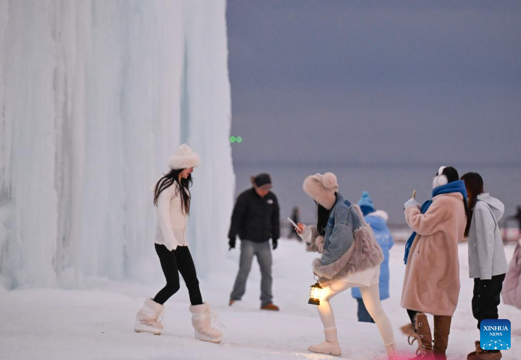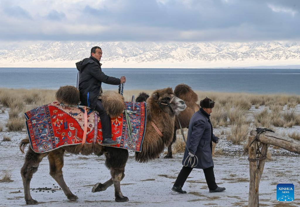 URUMQI, 17 diciembre, 2025 (Xinhua) -- Imagen del 15 de diciembre de 2025 de turistas divirtiéndose en el lago Sayram, en la prefectura autónoma mongola de Bortala, en la región autónoma uygur de Xinjiang, en el noroeste de China. (Xinhua/Wang Fei)