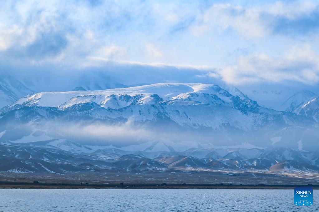 URUMQI, 17 diciembre, 2025 (Xinhua) -- Imagen del 16 de diciembre de 2025 del lago Sayram con una montaña nevada en el fondo, en la prefectura autónoma mongola de Bortala, en la región autónoma uygur de Xinjiang, en el noroeste de China. (Xinhua/Wang Fei)