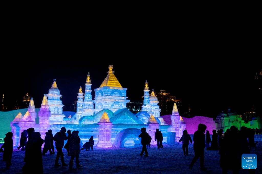 MANZHOULI, 20 diciembre, 2025 (Xinhua) -- Personas visitan un parque temático de hielo y nieve, en Manzhouli, en la región autónoma de Mongolia Interior, en el norte de China, el 20 de diciembre de 2025. El 22 festival internacional de hielo y nieve China-Rusia-Mongolia se inauguró aquí el sábado. El parque temático creado para el festival cubre una superficie de 128.000 metros cuadrados. (Xinhua/Lian Zhen)