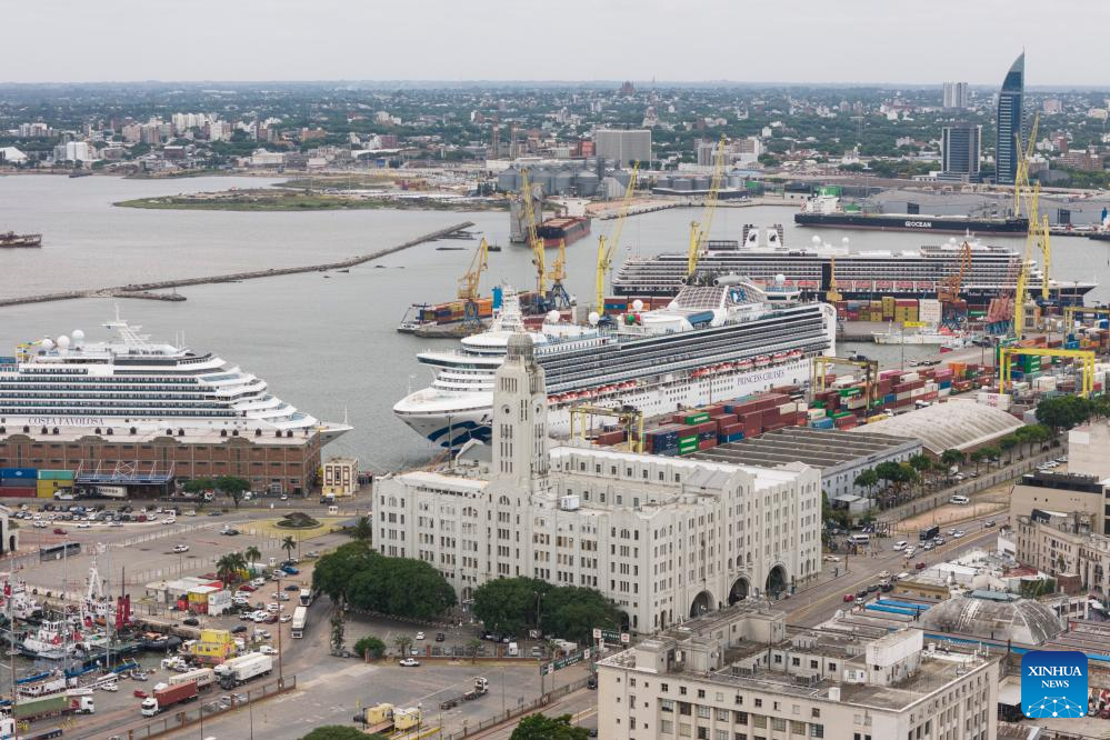 MONTEVIDEO, 20 diciembre, 2025 (Xinhua) -- Vista aérea tomada con un dron de cruceros atracados en el Puerto de Montevideo durante la temporada turística de cruceros 2025-2026, en Montevideo, capital de Uruguay, el 20 de diciembre de 2025. (Xinhua/Nicolás Celaya)