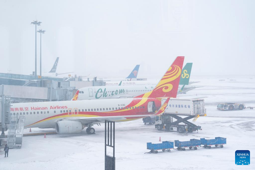 HARBIN, 23 diciembre, 2025 (Xinhua) -- Imagen del 23 de diciembre de 2025 de una vista del Aeropuerto Internacional Taiping de Harbin, en Harbin, en la provincia de Heilongjiang, en el noreste de China. El observatorio meteorológico de Harbin emitió el martes una alerta amarilla por ventisca. (Xinhua/Xie Jianfei)