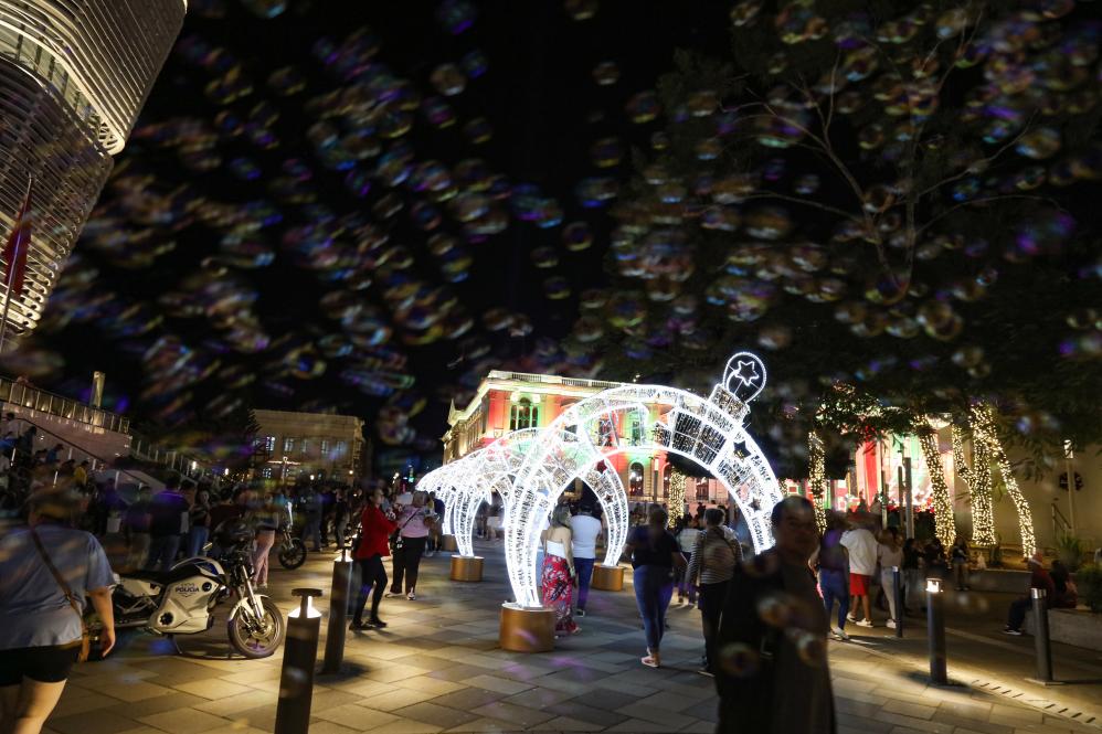 SAN SALVADOR, 24 diciembre, 2025 (Xinhua) -- Imagen del 23 de diciembre de 2025 de personas caminando a través de instalaciones de luces navideñas durante la temporada navideña, en el departamento de San Salvador, El Salvador. (Xinhua/Alexander Peña)
