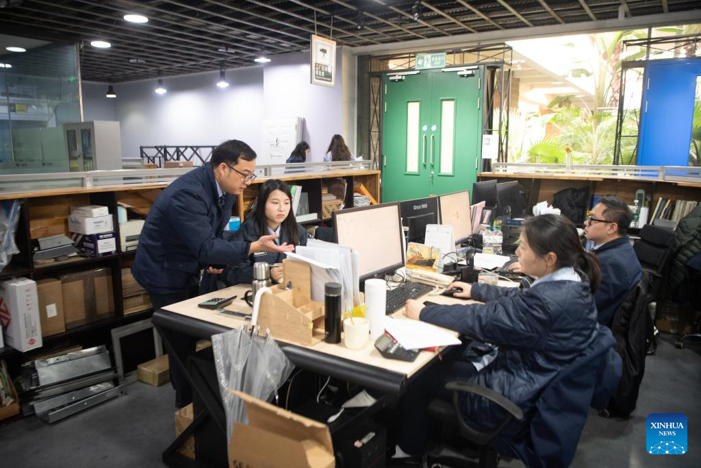 CHONGQING, 24 diciembre, 2025 (Xinhua) -- Imagen del 18 de diciembre de 2025 de Tang Hexia (frente) y su compañera revisando la página de Mexin Group en la plataforma de comercio electrónico Amazon, en la municipalidad de Chongqing, en el suroeste de China. El rápido crecimiento de la industria del comercio electrónico transfronterizo ha generado un aumento en la demanda de empleo. (Xinhua/Tang Yi)