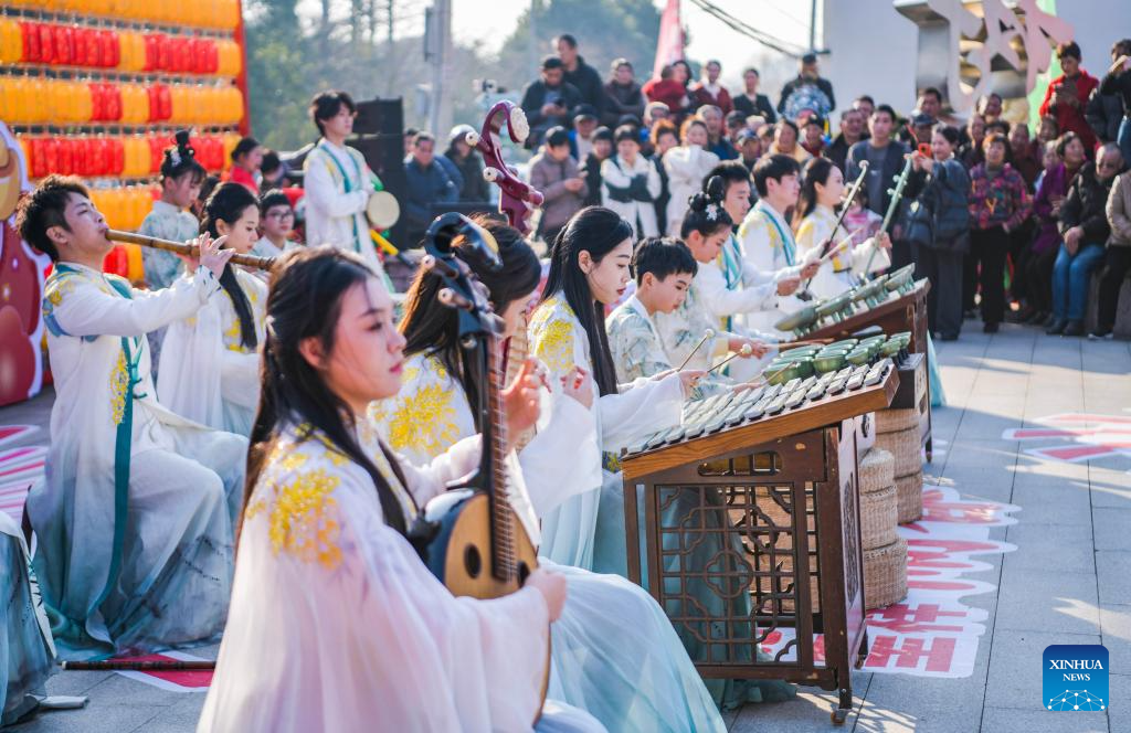 CIXI, 28 diciembre, 2025 (Xinhua) -- Aldeanos realizando una presentación durante una feria cultural folclórica, en Cixi, en la provincia de Zhejiang, en el este de China, el 28 de diciembre de 2025. (Xinhua/Xu Yu)