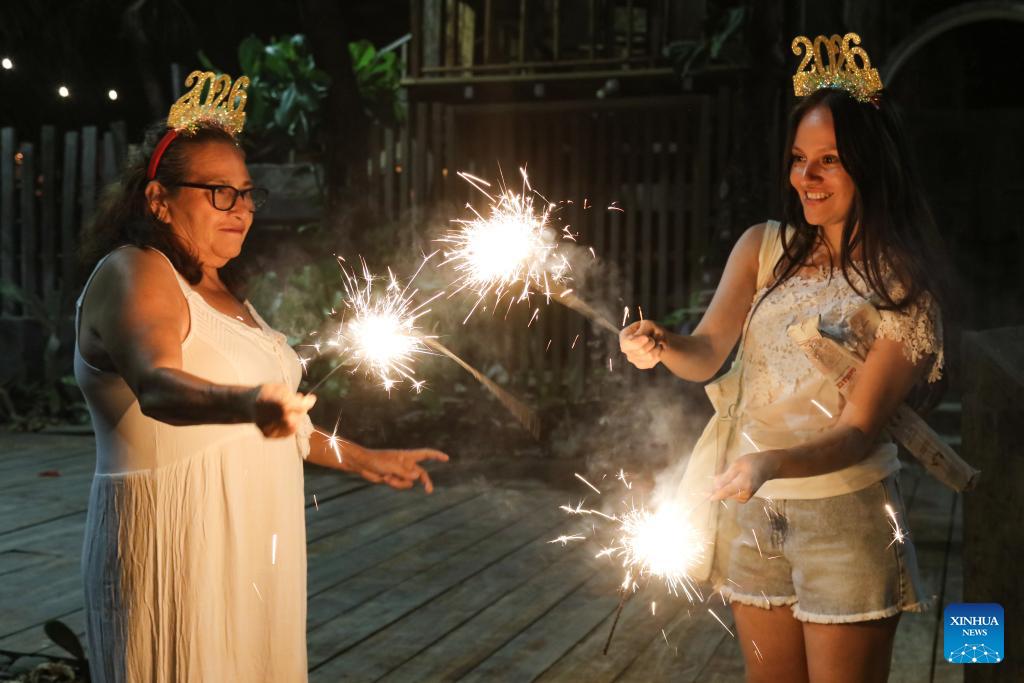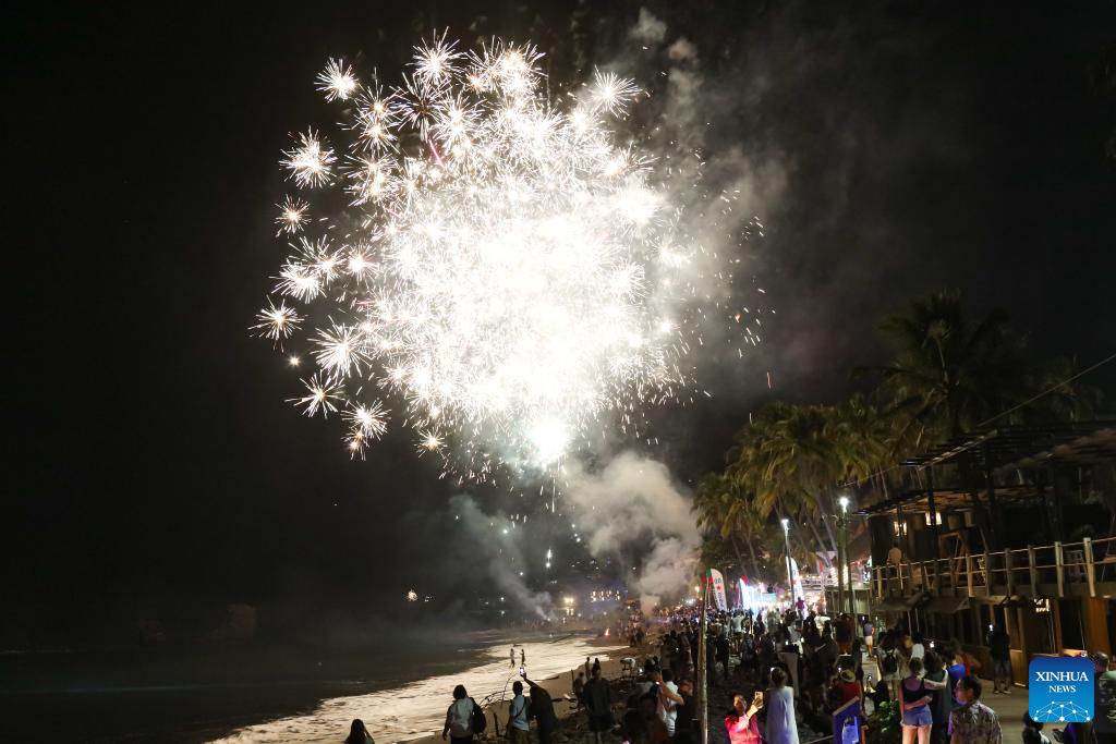 TAMANIQUE, 1 enero, 2026 (Xinhua) -- Imagen del 31 de diciembre de 2025 de personas celebrando el Año Nuevo en la playa El Tunco, en La Libertad, El Salvador. (Xinhua/Alexander Peña)