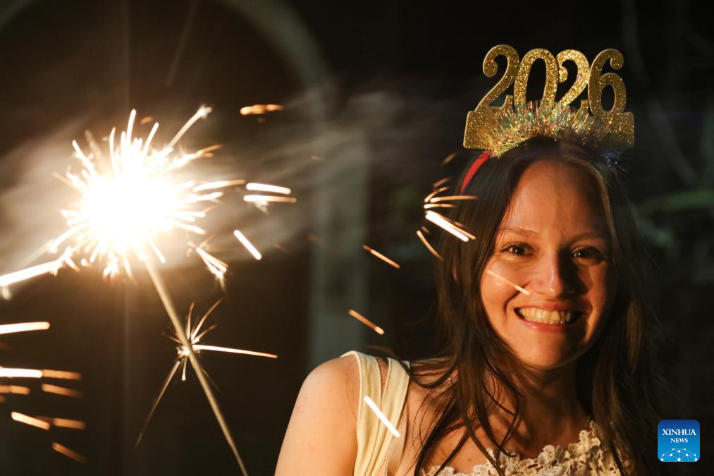 TAMANIQUE, 1 enero, 2026 (Xinhua) -- Imagen del 31 de diciembre de 2025 de una joven celebrando el Año Nuevo en la playa El Tunco, en La Libertad, El Salvador. (Xinhua/Alexander Peña)
