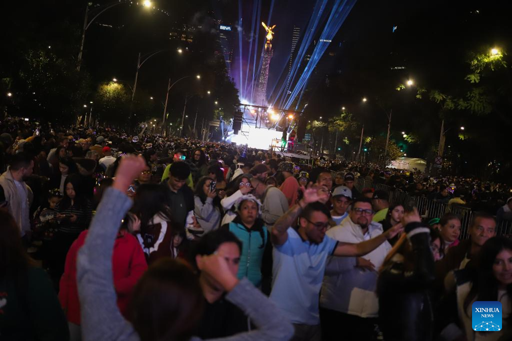 CIUDAD DE MEXICO, 1 enero, 2026 (Xinhua) -- Imagen del 31 de diciembre de 2025 de personas celebrando el Año Nuevo, en la Ciudad de México, capital de México. (Xinhua/Daniel Augusto)