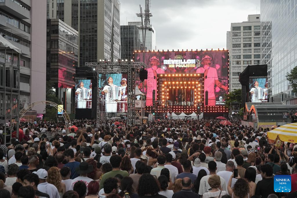 SAO PAULO, 1 enero, 2026 (Xinhua) -- Imagen del 31 de diciembre de 2025 de personas asistiendo a un concierto durante la celebración de Año Nuevo, en Sao Paulo, Brasil. (Xinhua/Paulo Lopes)