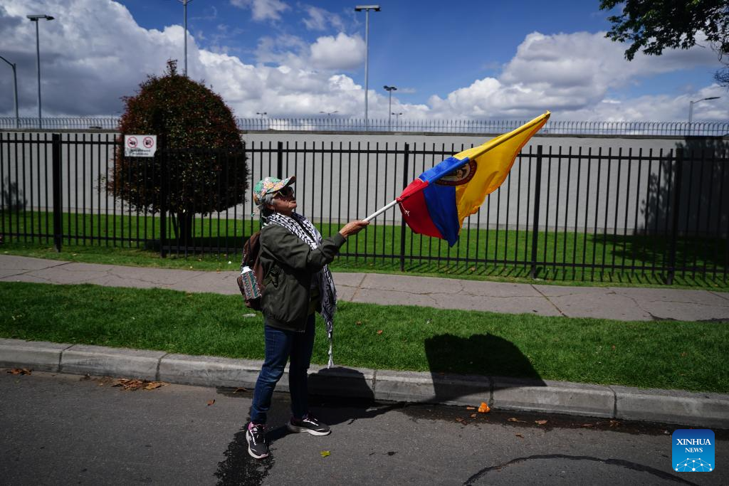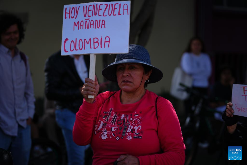 BOGOTÁ, 3 ene (Xinhua) -- Un grupo de colombianos se manifestó la tarde de este sábado frente a la Embajada de Estados Unidos en Bogotá, en repudio al ataque militar en Venezuela y la captura del presidente venezolano, Nicolás Maduro, y de su esposa, Cilia Flores.