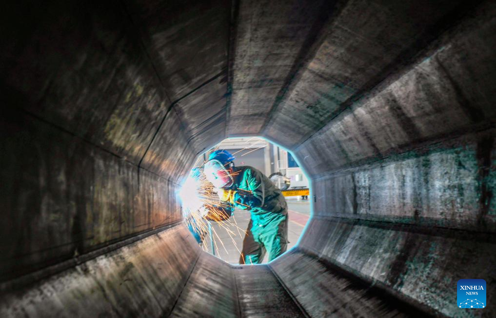 BEIJING, 4 enero, 2026 (Xinhua) -- Un trabajador opera en un taller de la zona de desarrollo económico del puerto de Tangshan, en Tangshan, en la provincia de Hebei, en el norte de China, el 4 de enero de 2026. (Xinhua/Liu Mancang)
