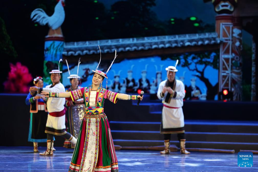 LANZHOU, 8 enero, 2026 (Xinhua) -- Imagen del 7 de enero de 2026 de actores de una compañía artística del distrito de Wenxian de Gansu presentándose durante el primer espectáculo de un evento cultural masivo de presentación y difusión llevado a cabo en la Sala de Conciertos de Lanzhou, en Lanzhou, en la provincia de Gansu, en el noroeste de China. El evento cultural masivo de presentación y difusión, que prevé organizar 240 espectáculos culturales masivos a lo largo del año, tiene como objetivo construir escenarios culturales y artísticos para el público en general a sus puertas. (Xinhua/Chen Bin)