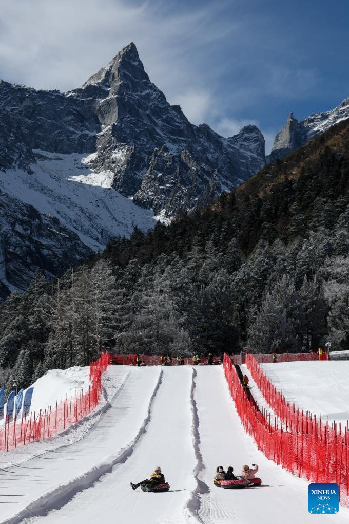 CHENGDU, 9 enero, 2026 (Xinhua) -- Imagen del 5 de enero de 2026 de personas divirtiéndose en una estación de esquí, en el distrito de Lixian, en la provincia de Sichuan, en el suroeste de China. Sichuan se encuentra entre las regiones más ricas del mundo en turismo de hielo y nieve en latitudes bajas y al aprovechar sus icónicos paisajes que combinan montañas nevadas con temperaturas suaves, la provincia se ha convertido en un destino popular para viajeros nacionales e internacionales. (Xinhua/Jiang Hongjing)